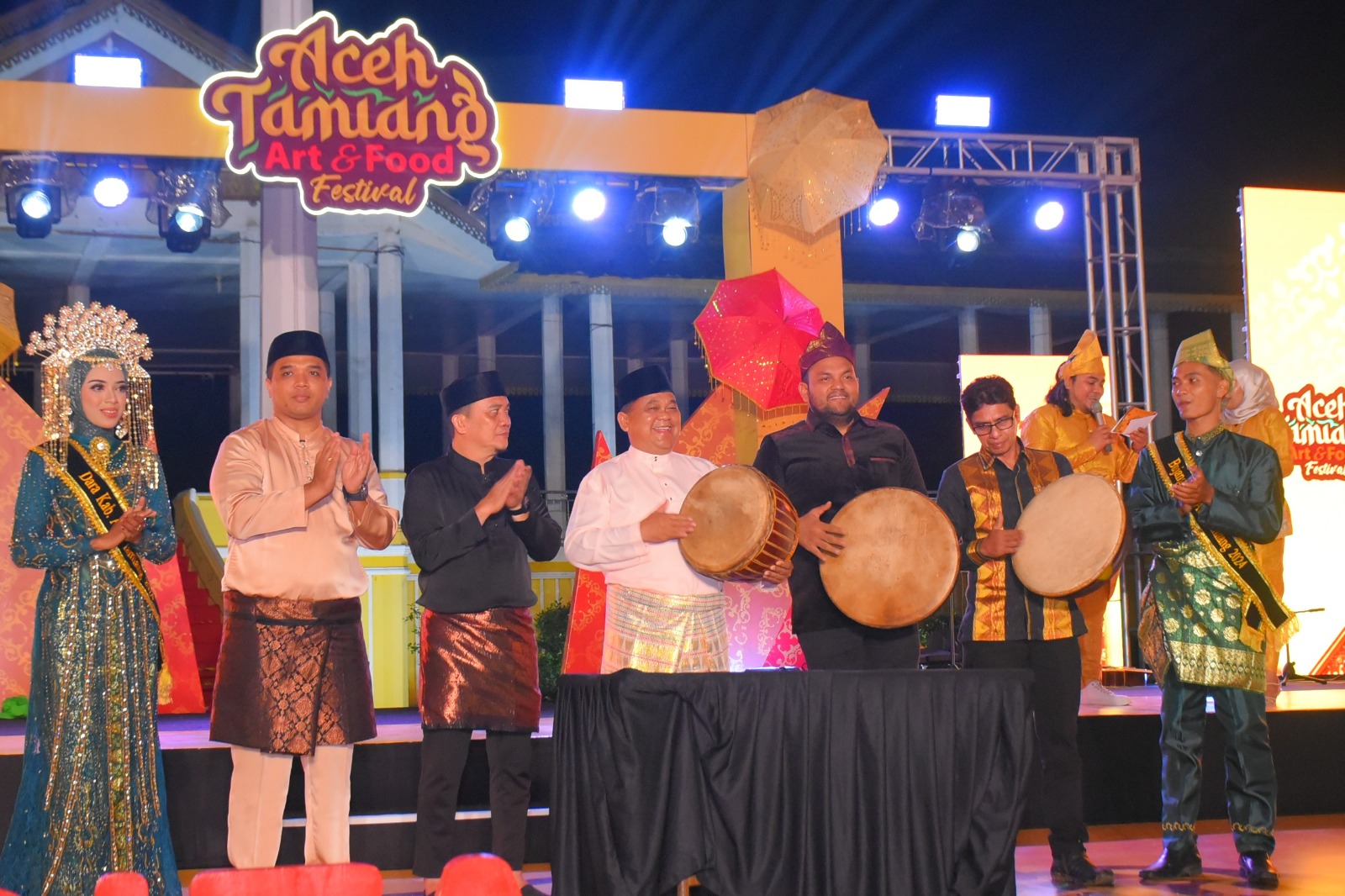 Di akhir acara Pj. Bupati Asra, bersama Komisi II DPRA Aceh Irfansyah, SE, PPTK Kebudayaan dan Pariwisata Aceh dan disaksikan Kadis Pariwisata Pemuda dan Olahraga Kabupaten Aceh Tamiang dan Anggota DPRK Aceh Tamiang menabuh rabana sebagai pertanda “Aceh Tamiang Art and Food Festival 2024” resmi di buka.