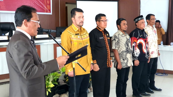 BLANGKEJEREN (Berita): Penjabat (Pj) Gubernur Aceh yang diwakili Asisten II Sekda Aceh, Mawardi, mengukuhkan Tim Percepatan Akses Keuangan Daerah (TPAKD) di lima Kabupaten/Kota dan Penandatanganan Program Kerja Tahun 2023, di Aula Kantor Bupati Bener Meriah. Kamis (02/02).