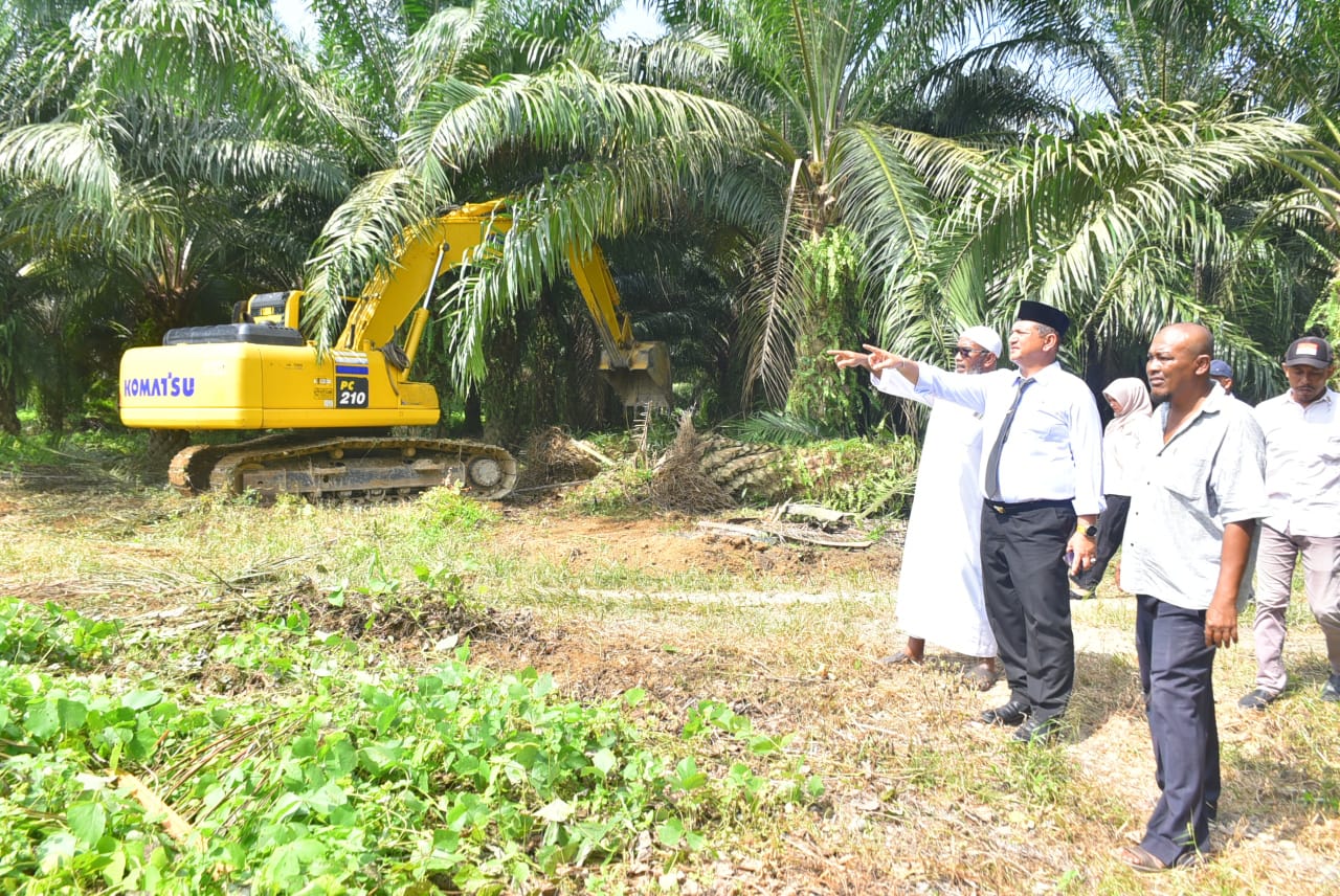 KUALASIMPANG (Berita): Bupati Aceh Tamiang Irjen Pol (P) Drs. Armia Pahmi didampingi Wakil Bupati Aceh Tamiang Ismail SE.i meninjau lokasi rencana pembangunan Masjid Agung Aceh Tamiang di Desa Kebun Tanah Terban, Kecamatan Karang Baru, Senin (2/6/2025).