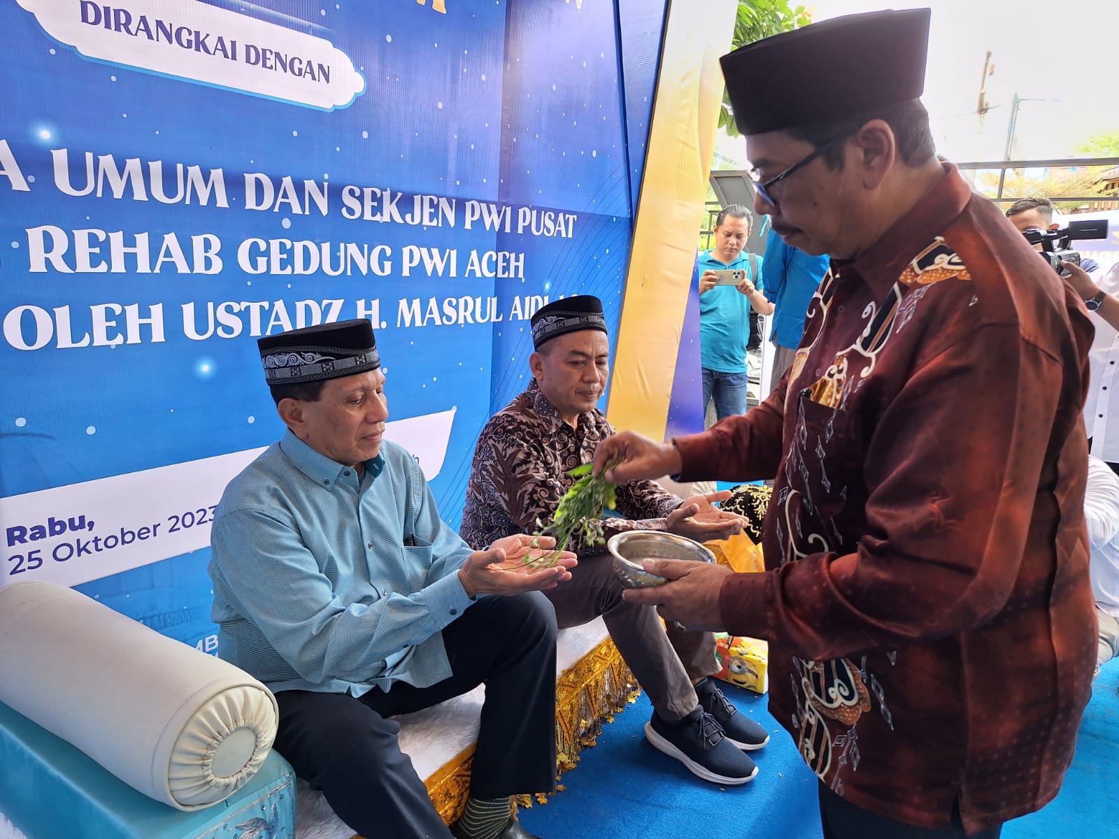 Pada rangkaian kegiatan peringatan maulid Nabi Muhammad SAW tahun 1445 H, PWI Aceh selain melakukan peusijuk (tepung tawar) Ketua Umum dan Sekretaris Jenderal PWI Pusat, juga dilaksanakan peresmian rehab Kantor PWI dengan dukungan anggaran Pemerintah Aceh.