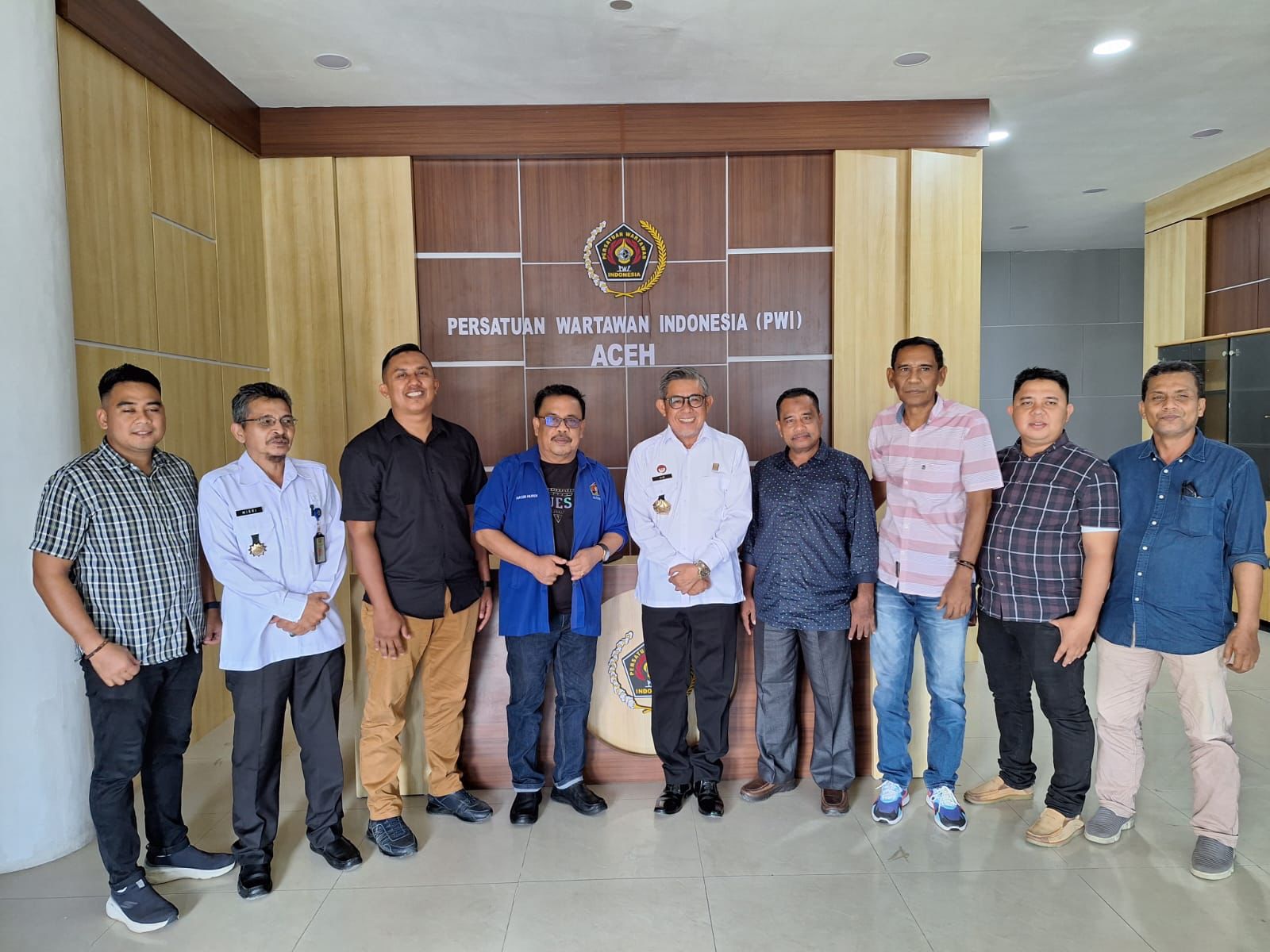 Kedatangan Ujo ke PWI didampingi Kasubid Informasi Keimigrasian Kanwil Kemenkumham Aceh, Misri.