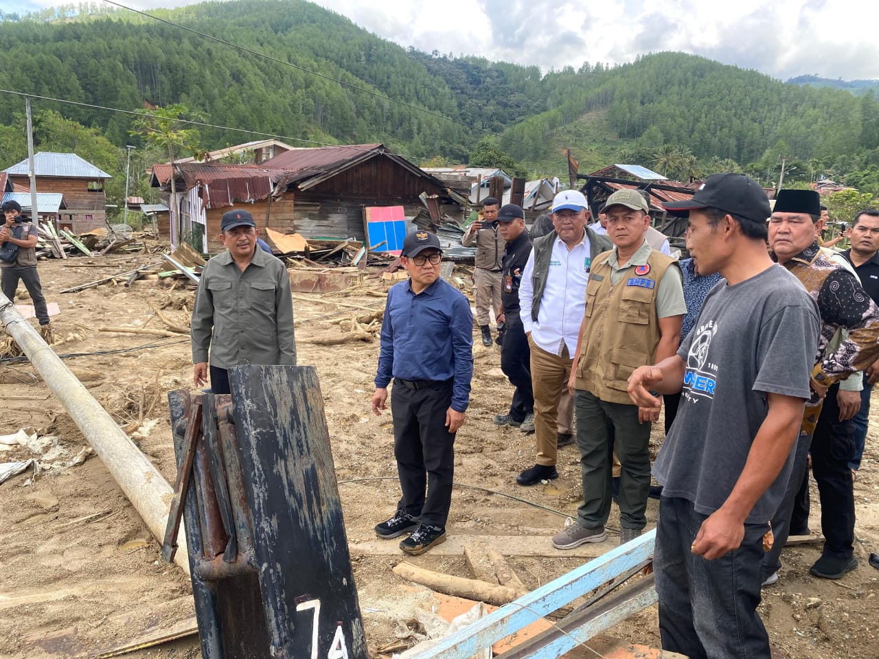 Menko PM RI dan Anggota DPR-RI H.Irmawan dari Partai PKB meninjau langsung warga yang terdampak bencana di Kabupaten Gayo Lues pada Kamis (4/12/2025). Berita Sore/Muhammad Iqbal