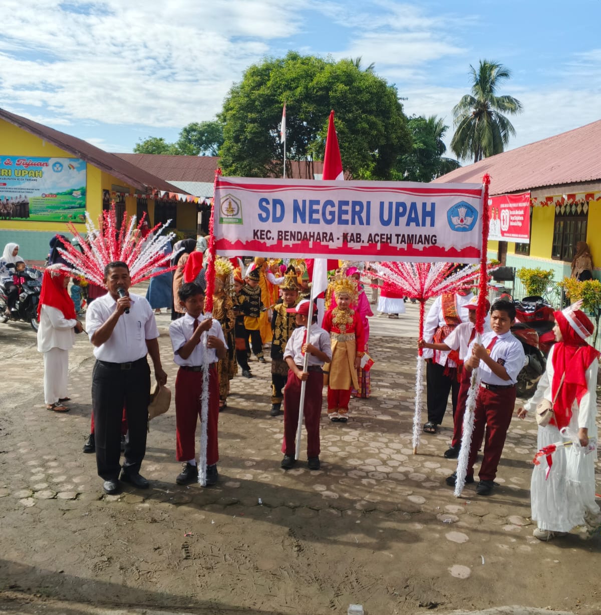 Kepala Sekolah SD Negeri Upah Kecamatan Bendahara, Ismail, S.Pd saat pelepasan start karnaval mengatakan bahwa karnaval ini merupakan salah satu upaya sekolah untuk menanamkan nilai-nilai kebangsaan dan kesadaran akan pentingnya kemerdekaan pada siswa.