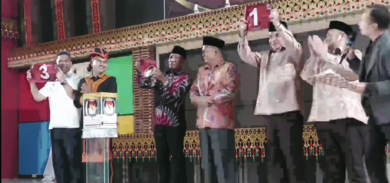 Dalam pelaksanaan pengundian tampak Pasangan Calon HM Salim Fackhry-Heri Al Hilal (SAH) dapat nomor jitu Angka 1.
