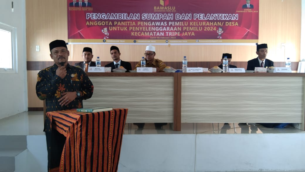 Untuk pelantikan dan pengambilan sumpah bagi Anggota Panitia Pengawasan Pemilu Kelurahan/Desa ( PKD) Se-Kecamatan Tripe Jaya langsung dilakukan oleh Ketua Panwascam Tripe Jaya Muhammad dan didampingi oleh ketua Bawaslu Kabupaten Gayo Lues, Sulaiman.