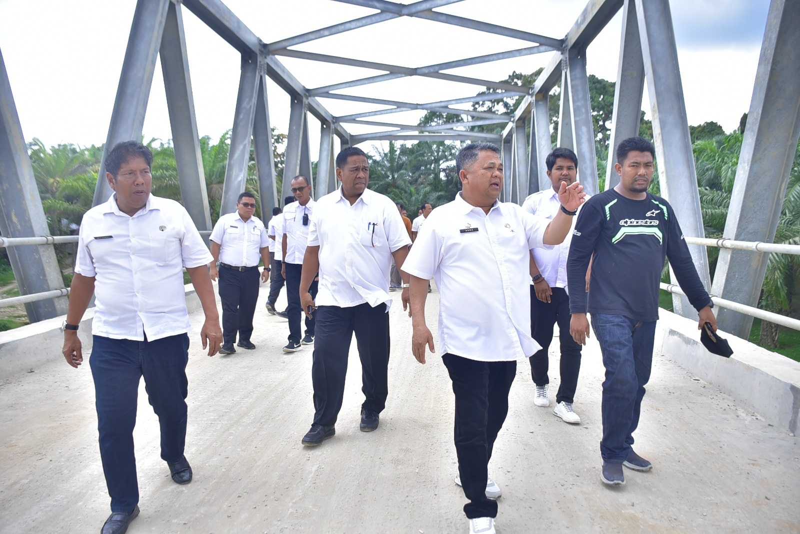 KUALASIMPANG (Berita) : Penjabat (Pj) Bupati Aceh Tamiang Drs. Asra meninjau jembatan penghubung antara Kampung Rantau Bintang, Bandar Pusaka dengan Kampung Pematang Durian Sekerak yang baru selesai dikerjakan oleh Dinas Pekerjaan Umum dan Penataan Ruang setempat, Rabu (24/1).