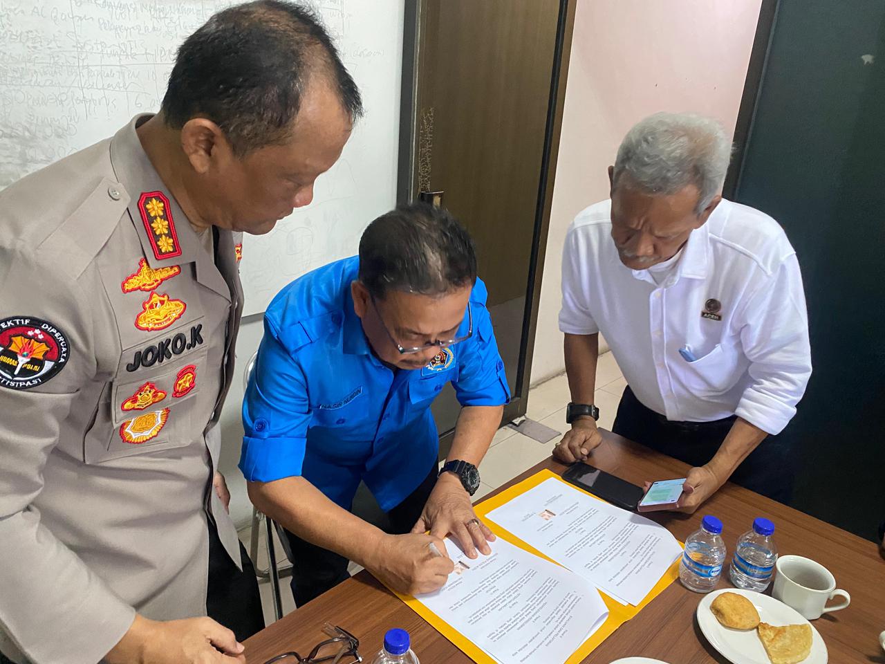 Ketua PWI Aceh, Nasir Nurdin didampingi Ketua Dewan Kehormatan Provinsi (DKP) PWI Aceh, HT Anwar Ibrahim saat menandatangani Perjanjian Kerja Sama (LKS) Antara Bidang Humas Polda Aceh dengan PWI Aceh tentang Joint Press Conference dalam Rangka Pengawalan Ketahanan Pangan Nasional di Kantor PWI Aceh, kawasan Simpang Lima, Banda Aceh, Kamis, 4 September 2025. Berita Sore/ist