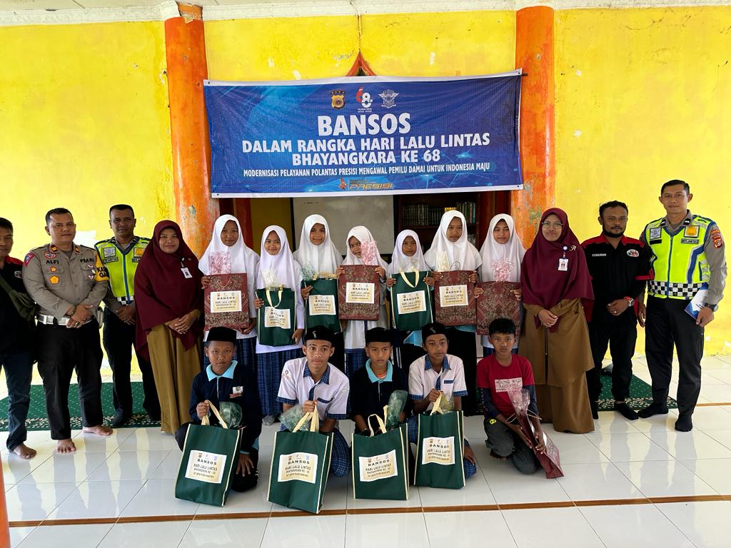 NAGAN RAYA (Berita): Dalam rangka hari lalu lintas Bhayangkara ke 68 Satlantas Polres Nagan Raya melakukan bantuan sosial di SMPS Islam Muslim Hands Nagan Raya,Senin (11/9)