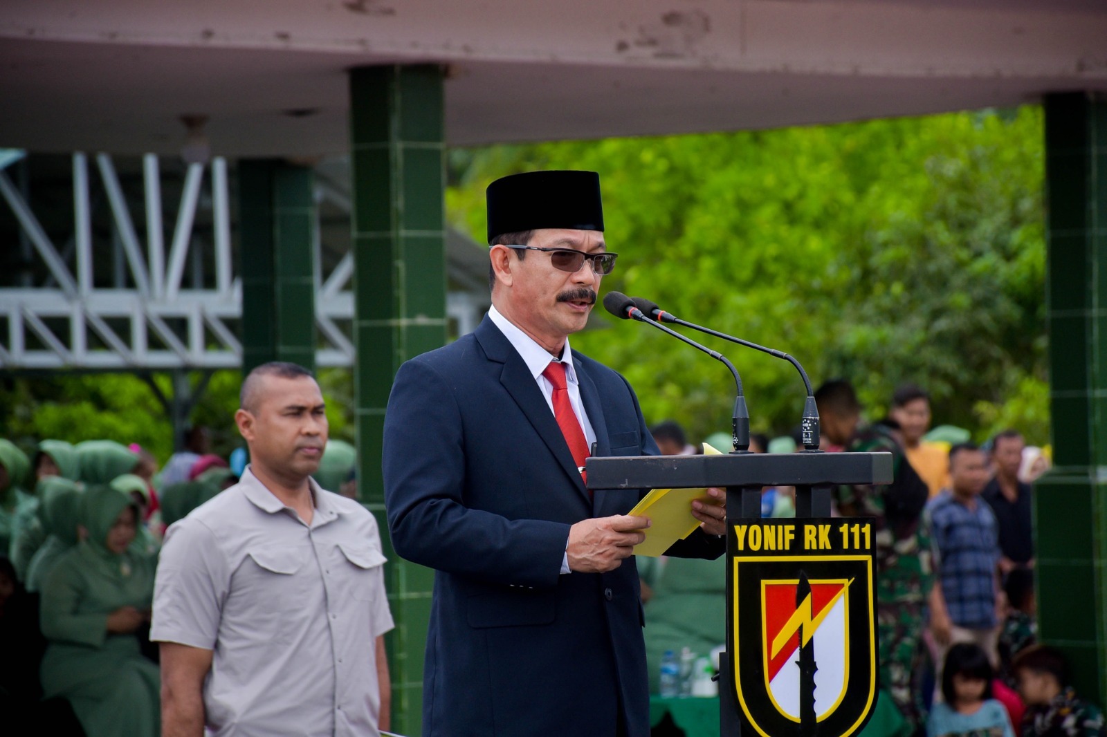 “Mari tegakkan hati, luruskan niat, bahwa tugas mulia ini ialah perwujudan ibadah kepada Allah SWT,” ajak Pj. Bupati kepada seluruh prajurit Yonif RK 111/KB.