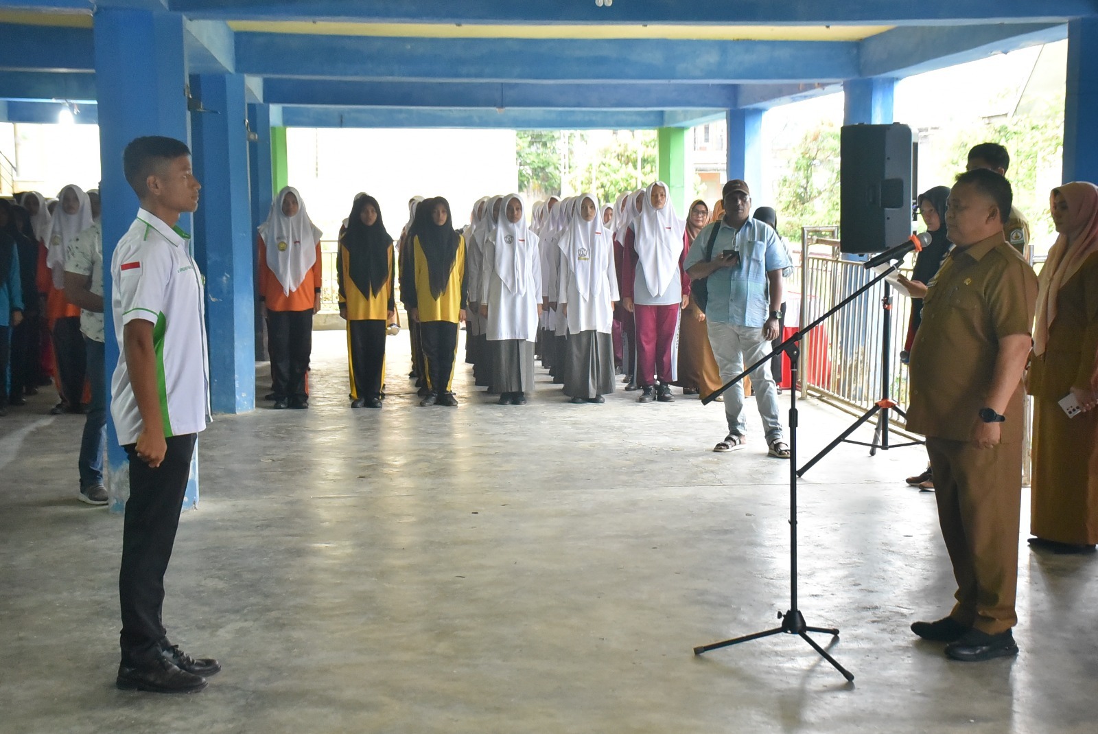 KUALASIMPANG (Berita) : Penjabat (Pj) Bupati Aceh Tamiang, Drs. Asra, memimpin apel pembukaan tanda dimulainya seleksi calon Paskibraka Tahun 2024. Kegiatan dilaksanakan di Kantor Badan Kesbangpol setempat, Senin (19/2/2024).