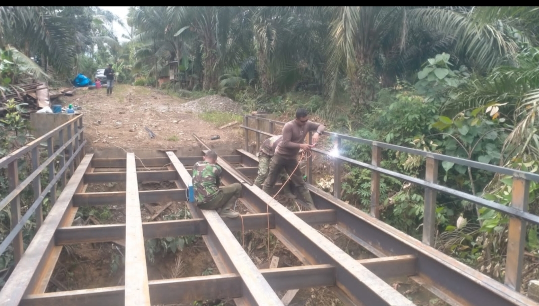 Berita Sore/hen Satgas TNI Manunggal Membangun Desa (TMMD) Reguler ke-119 Kodim 0117/Aceh Tamiang sedang merenovasi jembatan di Desa Kaloy, Kecamatan Tamiang Hulu, Kabupaten Aceh Tamiang, Sabtu (24/2/2024).