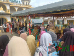 Teks foto: Warga “menyerbu” pasar murah beras di pelataran Masjid Raya Assyuhada’a, Desa Gunungtuaraya, Kec. Panyabungan, Kab. Mandailingnatal. Beritasore/Ist