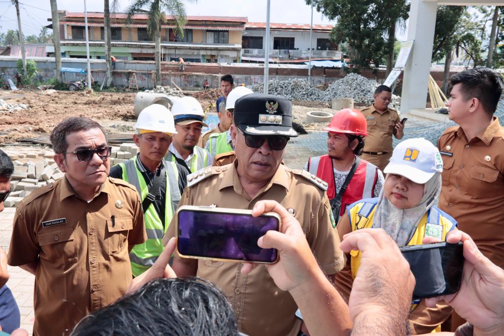 Hal ini disampaikan saat bupati didampingi Kepala Dinas PUPR Madina Elpi Yanti SariHarahap, ST melakukan peninjauan progres pembangunan pasar baru, Senin (6/11).