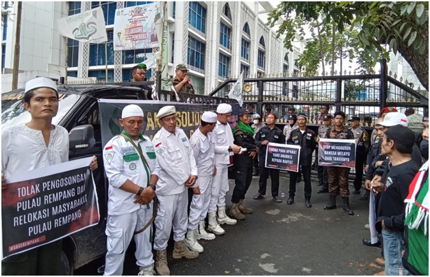 Mereka mendesak pemerintah untuk mengembalikan hak warga Melayu di Pulau Rempang, Kota Batam, Provinsi Kepulauan Riau, yang terzolimi akibat digusur dari tanah nenek leluhurnya yang sudah dihuni secara turun-temurun.