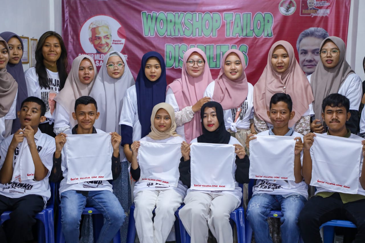 Asahan (Berita): Sukarelawan Ganjar Milenial Center (GMC) Sumatera Utara, terus memperluas kegiatan positif di tengah masyarakat. Kali ini, Ganjar Milenial Center Sumatera Utara Wilayah Kabupaten Asahan menggelar pelatihan menjahit untuk penyandang disabilitas.