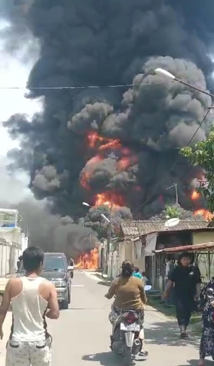 MEDAN (Berita): Satu gudang yang diduga sebagai tempat penimbunan bahan bakar minyak (BBM) dan CPO serta dua rumah permanen di Jl. Keluarga Lingkungan 20 Kelurahan Tanjungmulia Hilir Kecamatan Medan Deli, Minggu (11/6) sekira pukul 11:25 ludes terbakar.