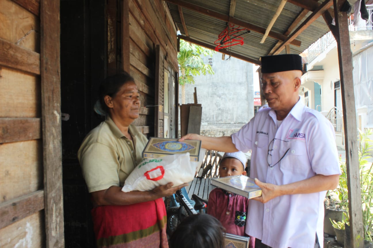 PANYABUNGAN (Berita): Serikat Media Siber Indonesia (SMSI) Kab. Mandailingnatal menyalurkan satu ton beras dan Alquran kepada kaum dhuafa, anak yatim dan masyarakat miskin di sekitaran Panyabungan.
