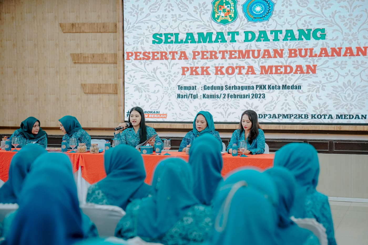 Hal ini disampaikan Ketua TP PKK saat memimpin Pertemuan Bulanan TP PKK Kota Medan di Gedung Serba Guna PKK, Jalan Rotan Proyek Medan, Kamis (2/2). Diungkapkan Ketua TP PKK, seluruh pengurus dan kader harus sama-sama saling berkolaborasi, membantu dan memotivasi.