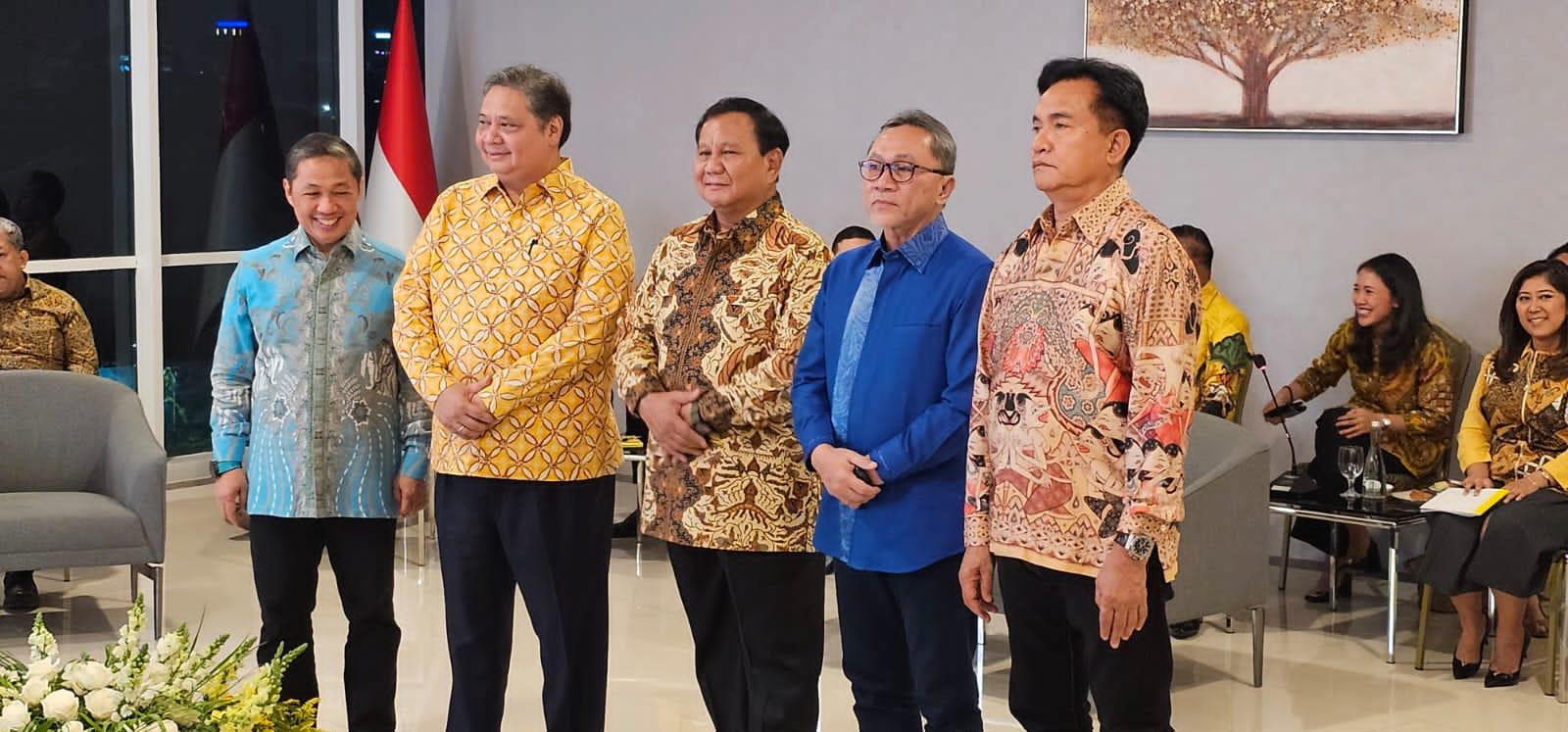 Pertemuan ketua umum koalisi parpol yang tergabung dalam KIM ini digelar di kantor DPP Partai Golkar ini juga dihadiri Ketua Umum PAN Zulkifli Hasan dan Ketua Umum PBB Yusril Ihza Mahendra, serta pengurus parpol KIM lainnya. (aya)
