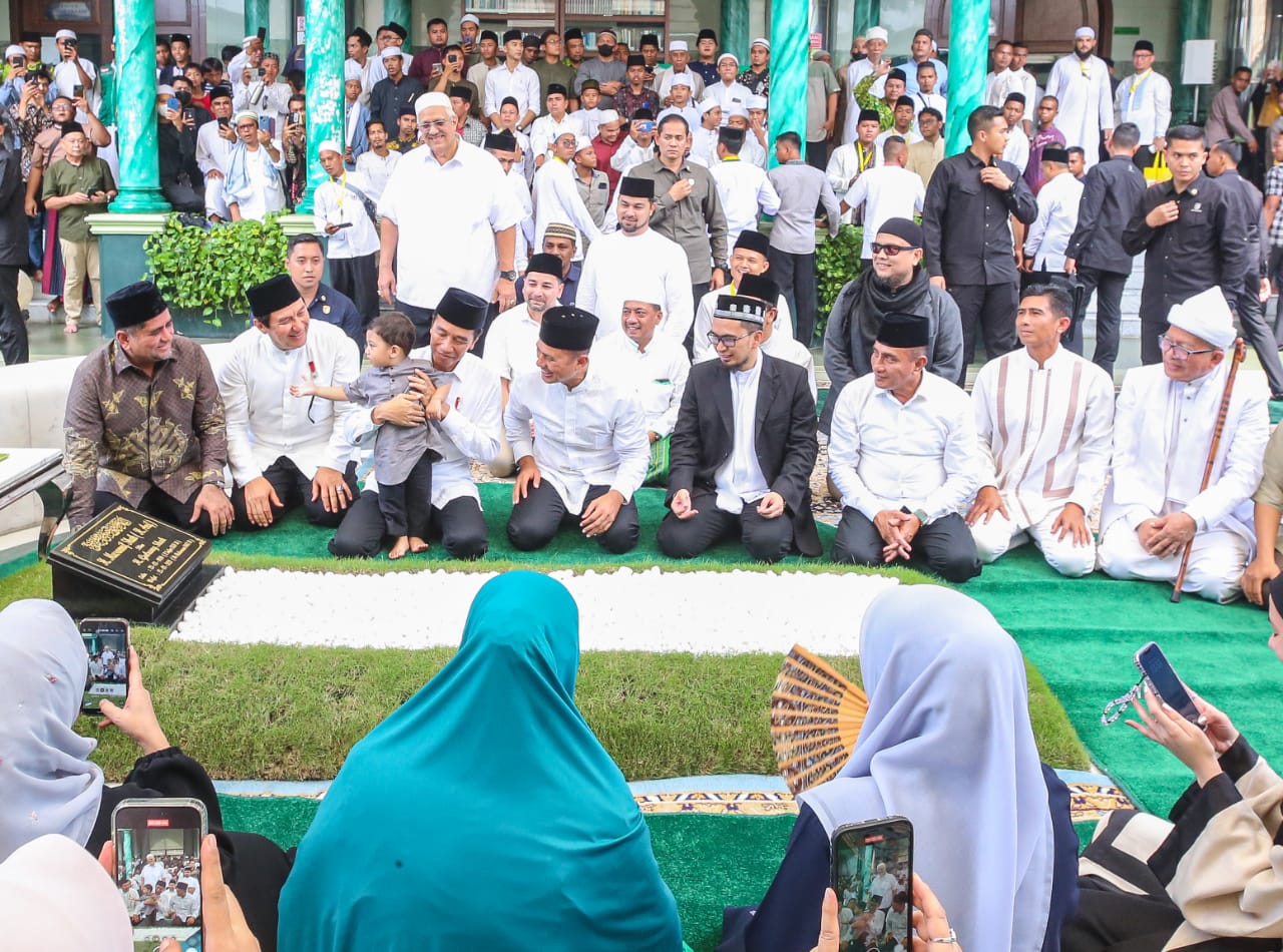 MEDAN (Berita): Presiden Republik Indonesia (RI), Joko Widodo, ustaz kondang Adi Hidayat serta ribuan masyarakat, alim ulama dan lainnya menghadiri Haul ke 2 Almarhum Haji Anif bin H Gulrang Shah di Masjid Al Musanif Medan, Jumat (25/8/2023).
