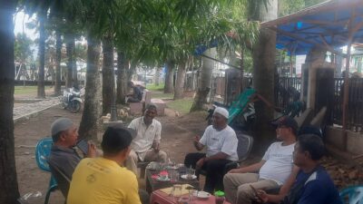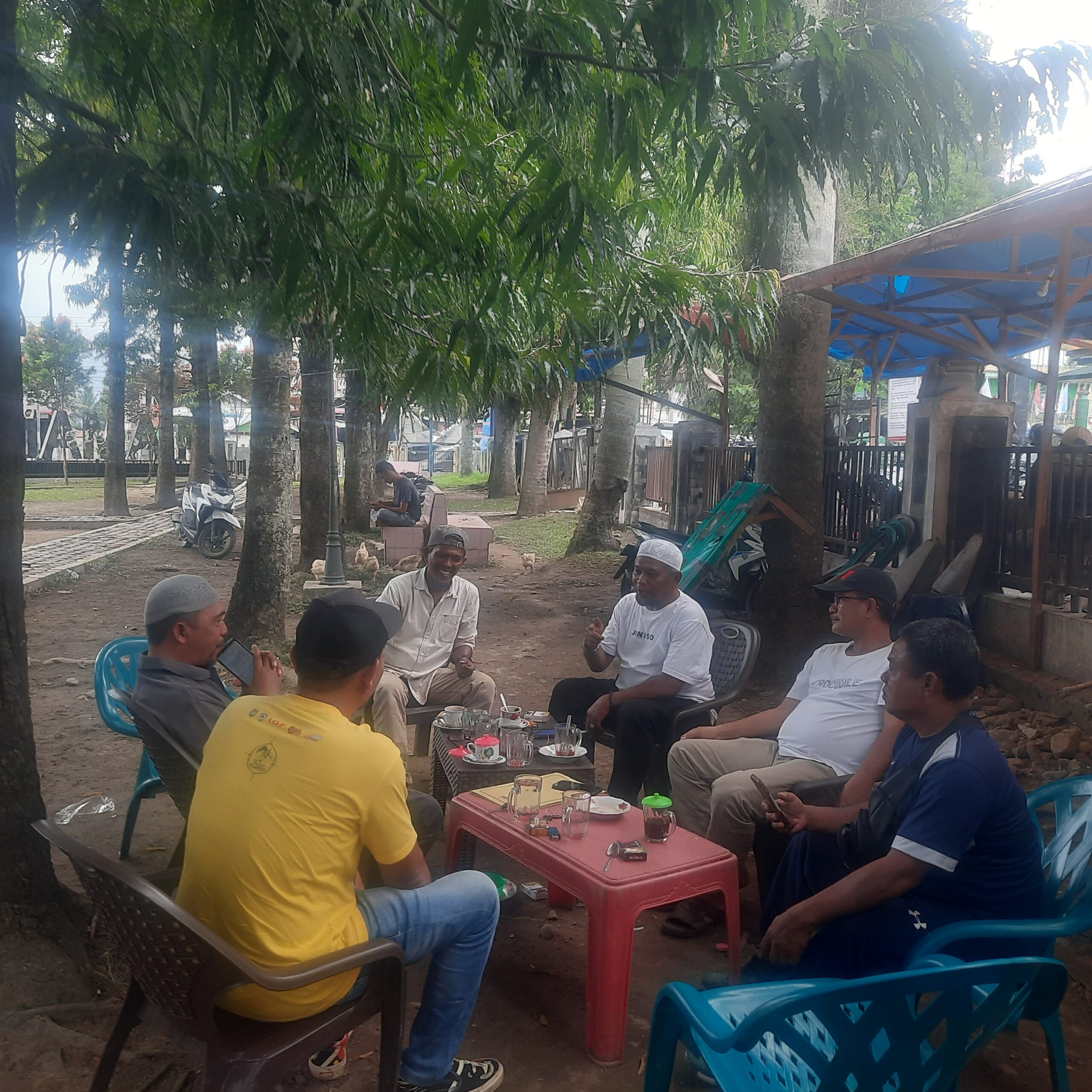 Sejumlah jurnalis berdiskusi di Posko Forum Wartawan Kota (Forwakot) Taman Panyabungan, Minggu (2/9).