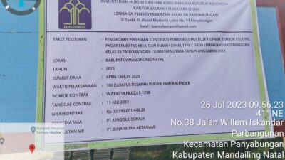 Dalam data LPSE terdapat anggaran Rp32 miliar dengan masa kerja 180 hari kalender untuk pengembang melakukan pekerjaan, baik gedung sel maupun tower pemantau di Lapas Panyabungan. (irh)