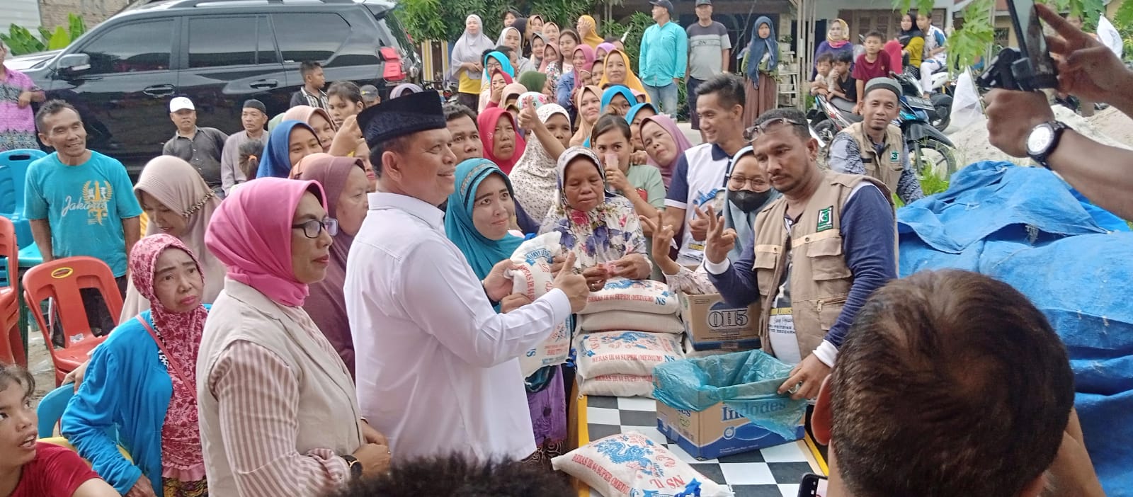 Teks fhoto: Dewan Pendiri sekaligus Pembina Komunitas Sedekah Jum'at (KSJ) yang akrab disapa Polisi Sang Pejuang Dhuafa Kombes Pol (Purn) H.Ikhwan Lubis SH,MH terus dan terus menyantuni 20 orang anak Yatim/Piyatu dan 60 orang Dhuafa sekaligus membuka pasar murah sembako beras kemasan isi 5 Kg seharga Rp.50.000- didepan rumah Uden Dusun II Desa Kuala Sikasim Kecamatan Sei Balai Kabupaten Batu Bara Jum'at (01/9-1023). beritasore/alirsyah