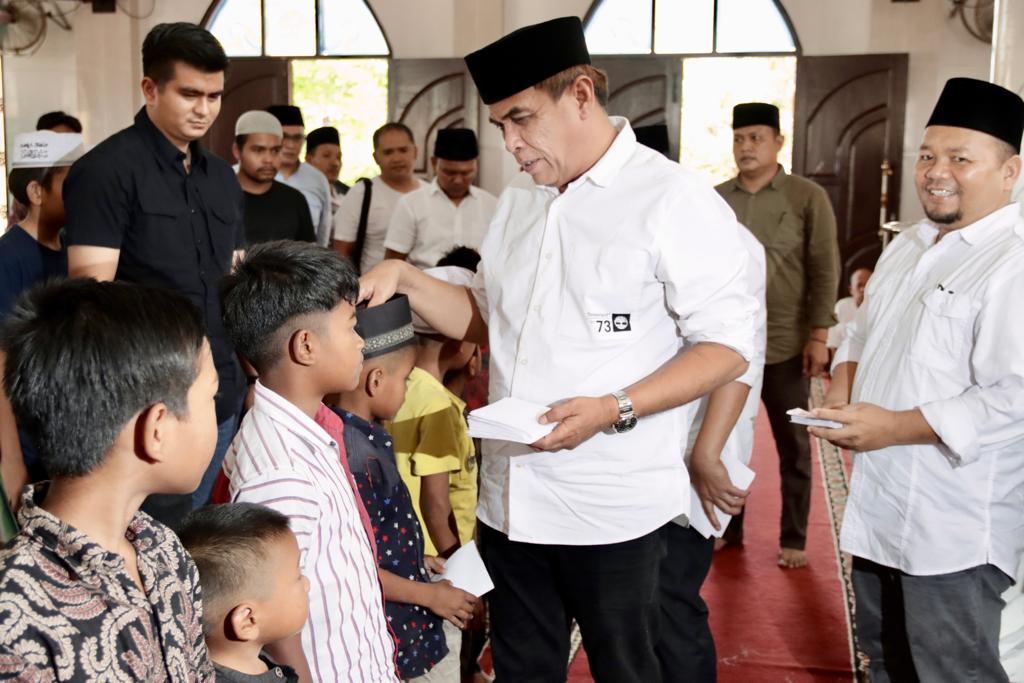 Sukhairi juga melaksanakan salat asar bersama anak-anak. Usai menunaikan salat Sukhairi langsung menyerahkan bantuan.