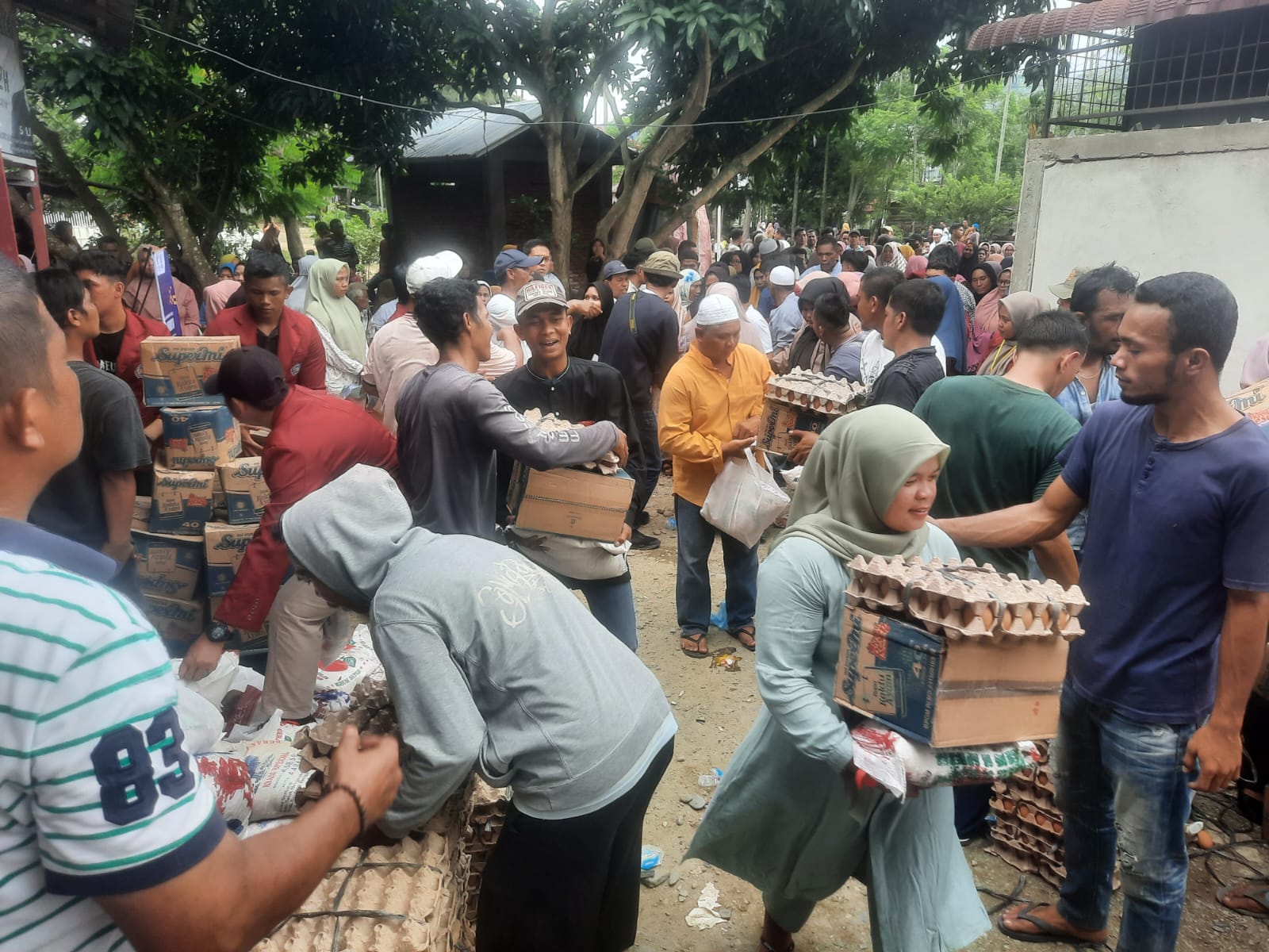Erwin Efendi Lubis yang juga Ketua DPRD Madina mengungkapkan, dari 4.350 paket dibagikan kepada warga dari berbagai desa di Madina, dibagikan bantuan dari BI dan Pemkab Madina merupakan inisiatif Gerindra. Pembagian sembako selesai pukul 13.36.
