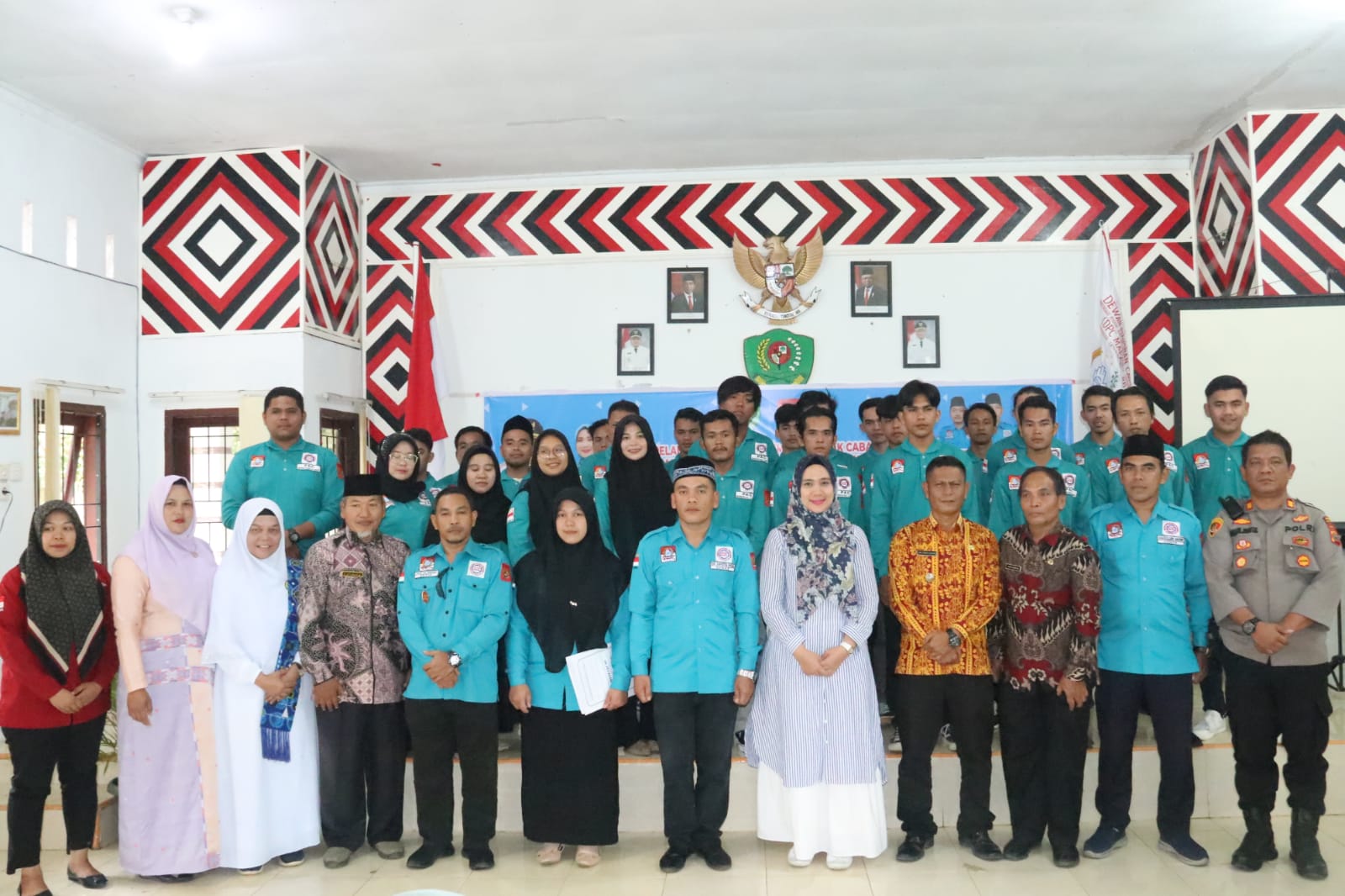 Usai pelantikan, pengurus Mapan RI Kab.Tapsel dengan PAC Mapan RI Angkola Barat menggelar foto bersama di Aula Kantor Camat setempat, Jumat (2/12).beritasore/Birong RT