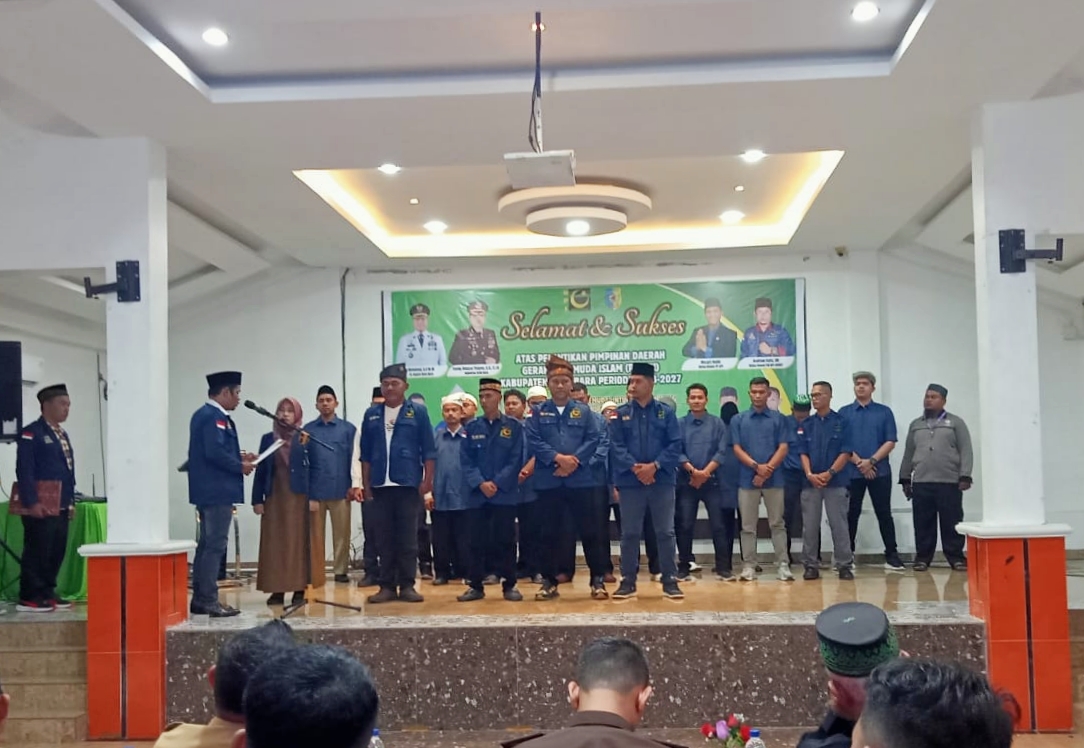 Teks fhoto: Pimpinan Wilayah Gerakan Pemuda Islam (PW-GPI) resmi melantik Pimpinan Daerah GPI Kabupaten Batu Bara Periode 2024-2027 di Aula Hotel Singapur Land Kecamatan Sei Balai Senin (04/03/2024).beritasore/alirsyah