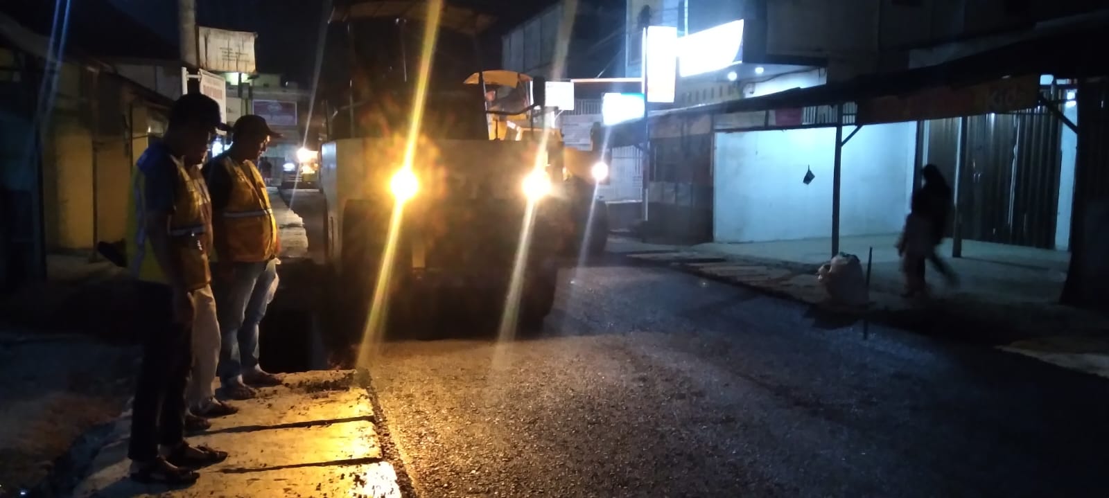 Elpi mengungkapkan, pekerjaan tadi malam dimulai pukul 22.00. “Aspalnya dua lapis.