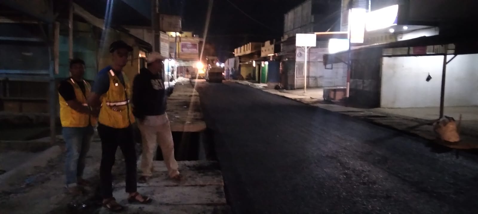Elpi mengungkapkan, pekerjaan tadi malam dimulai pukul 22.00. “Aspalnya dua lapis.