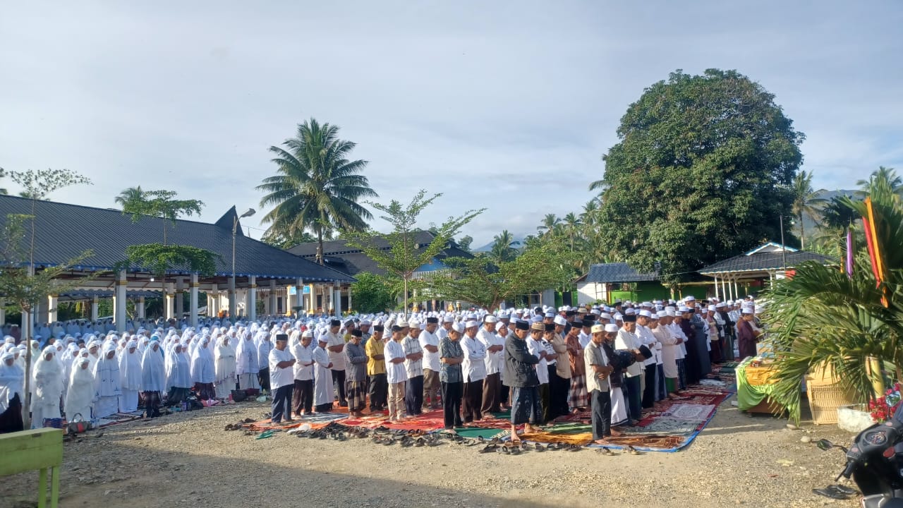 MADINA (Berita): Di akhir 1444 Hijriah, ribuan jamaah pengajian Baitul Bukhori Al Yusufiah Mandailing Natal melaksanakan saladlt tasbih, diimami Ustadz H.Yusuf Amiril Soleh (Tuan Nalomok) di pengajian Yayasan Baitul Bukhori Longat, Ahad (16/7) pagi.