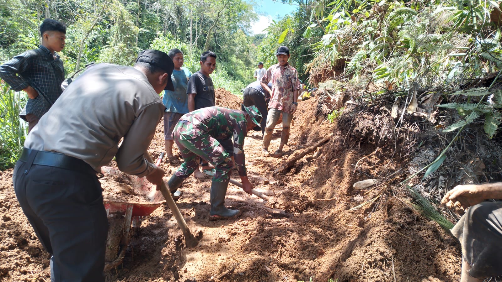 Selain itu, Forkopincam Kotanopan juga membantu warga bergotongroyong di Desa Ujungmarisi Dolok untuk membersihkan material tanah longsor dan kayu-kayu besar berserakan maupun menutupi badan jalan kabupaten.