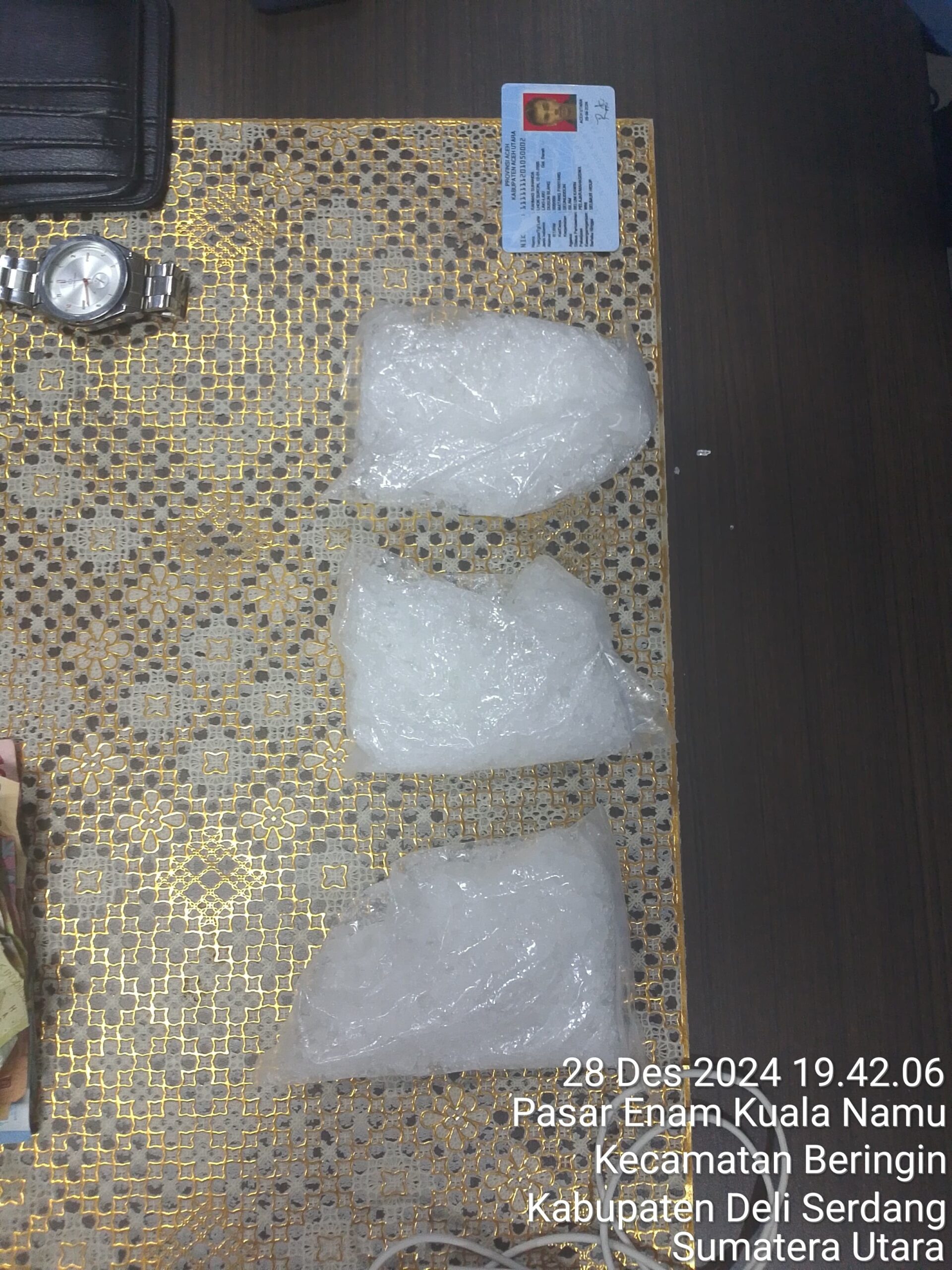 DELISERDANG (Berita): Menyembunyikan narkoba jenis sabu di dalam sepatunya, seorang calon penumpang pesawat tujuan Ujung Pandang-Makasar, berinsial RS, 19 warga Desa Matang Panyang Kecamatan Seunuddon Kabupaten Aceh Utara, diamankan petugas Avsec kerjasama Interdection Ditres Narkoba Polda Sumut, Sabtu (28/12/2024) malam, di Bandara Internasional Kualanamu.