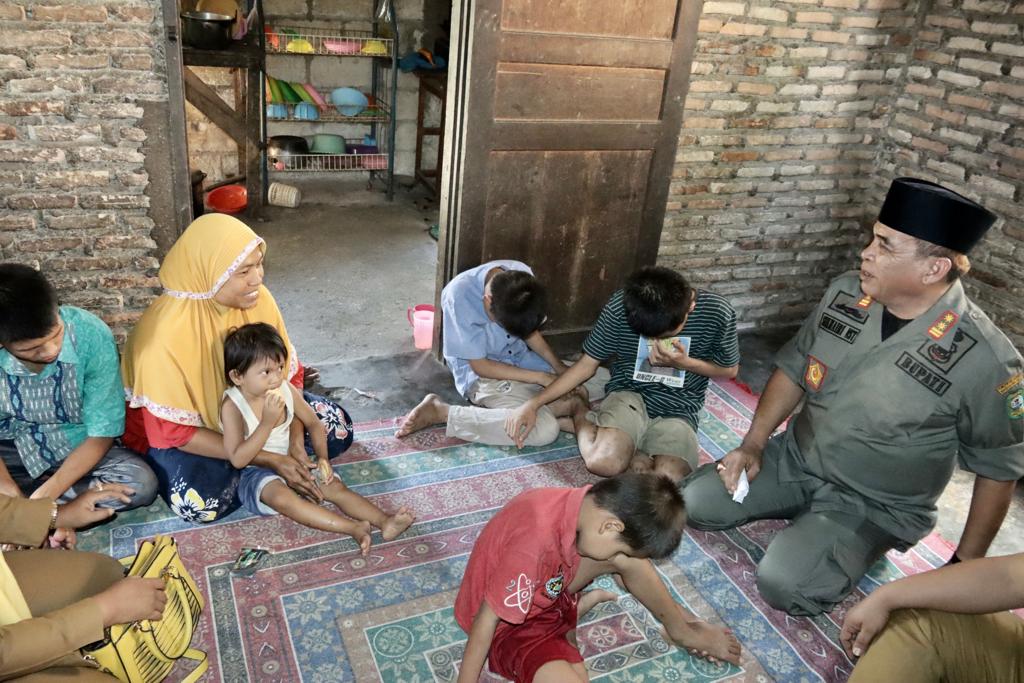 Bupati berjalan kaki ke rumah Muksin Rangkuti, orangtua lima bersaudara penderita katarak.