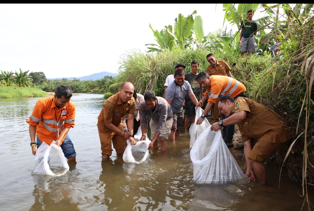 BATANGTORU, TAPSEL (Berita): PT Agincourt Resources, pengelola Tambang Emas Martabe, memperluas lubuk larangan Satahi di Sungai Garoga, Batang Toru, dengan menebarkan 3.500 bibit ikan jurung dan 300 kilogram ikan mas di zona teranyar Desa Batu Hula.