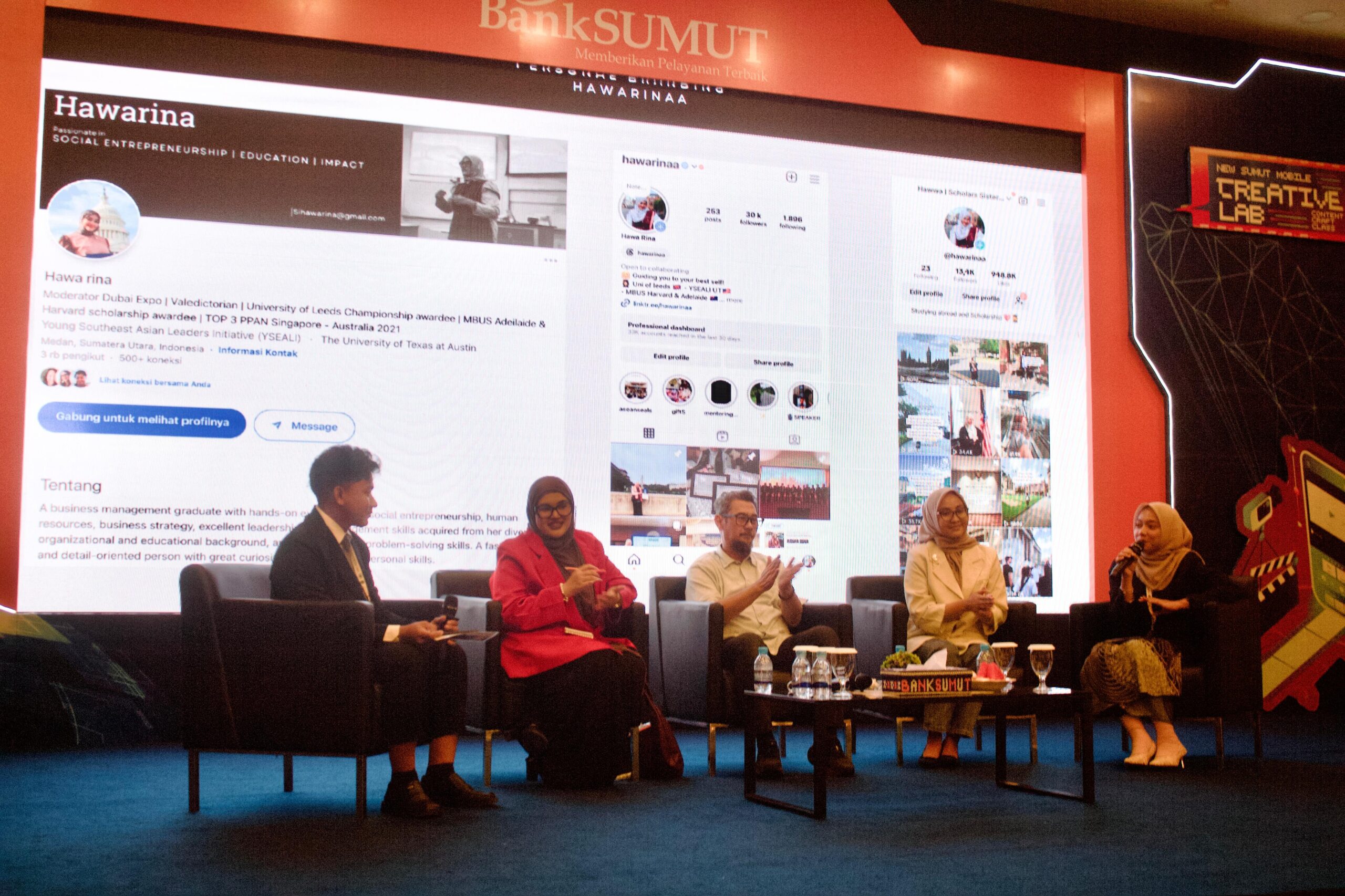 Bekerja sama dengan Himpunan Mahasiswa Jurusan (HMJ) Manajemen Fakultas Ekonomi dan Bisnis Islam (FEBI) UIN Sumatera Utara, Bank Sumut menjadi tuan rumah penyelenggaraan Seminar Nasional bertajuk “Building a Financially Literate, Socially Aware, and Digitally Ready Generation Z to Face Economic Transformation”.
