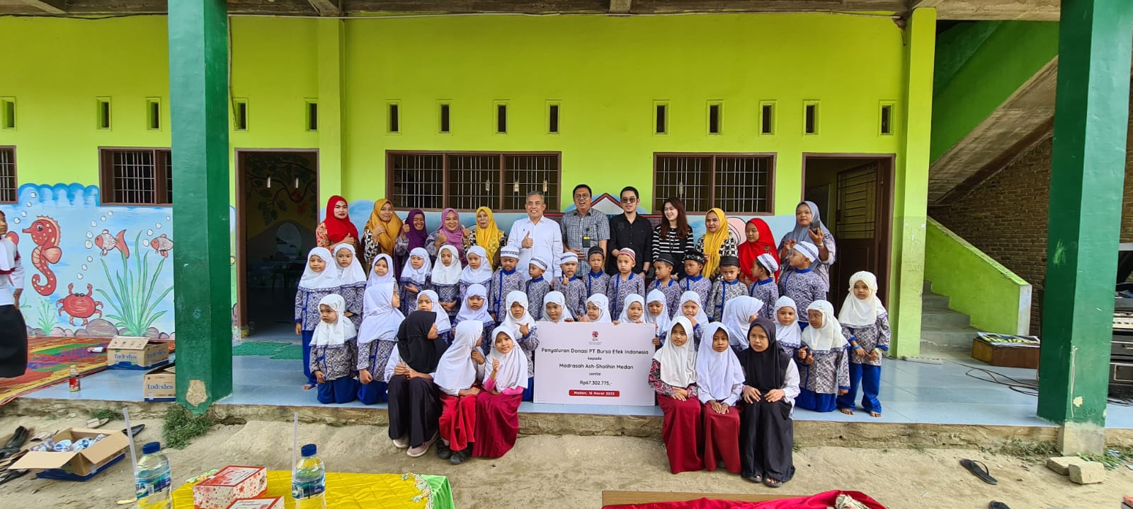 MEDAN (Berita): PT Bursa Efek Indonesia (BEI) menyalurkan bantuan dana CSR mereka sebesar Rp67.302.775 kepada Madrasah Ash-Sholihin di Medan.