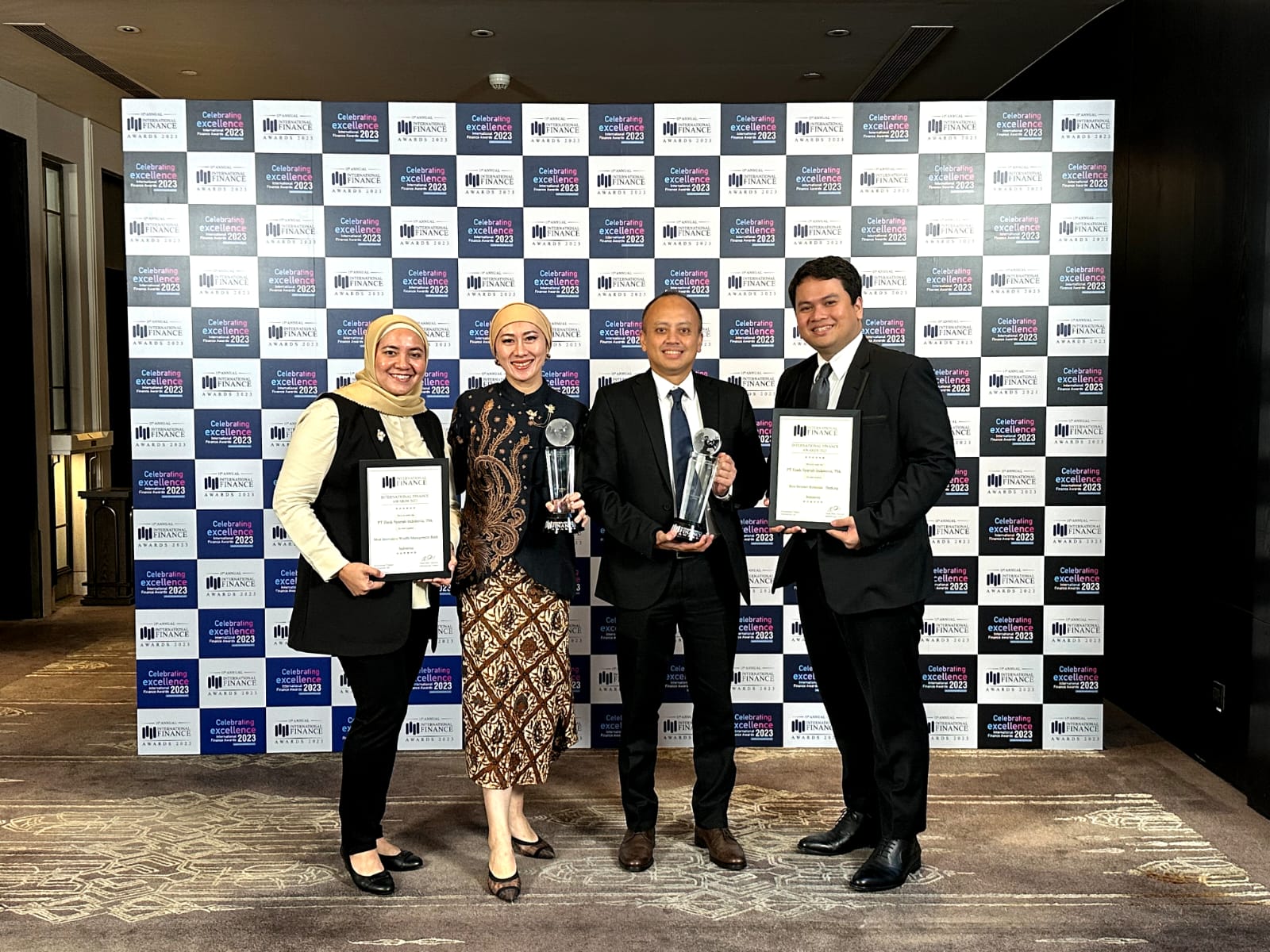 Atas pencapaian di dalam meningkatkan bisnis wealth, BSI memperoleh penghargaan Most Innovative Wealth Management Bank—Indonesia pada ajang International Finance Award 2023 yang berlangsung di Bangkok, Jumat (26/1/2024).