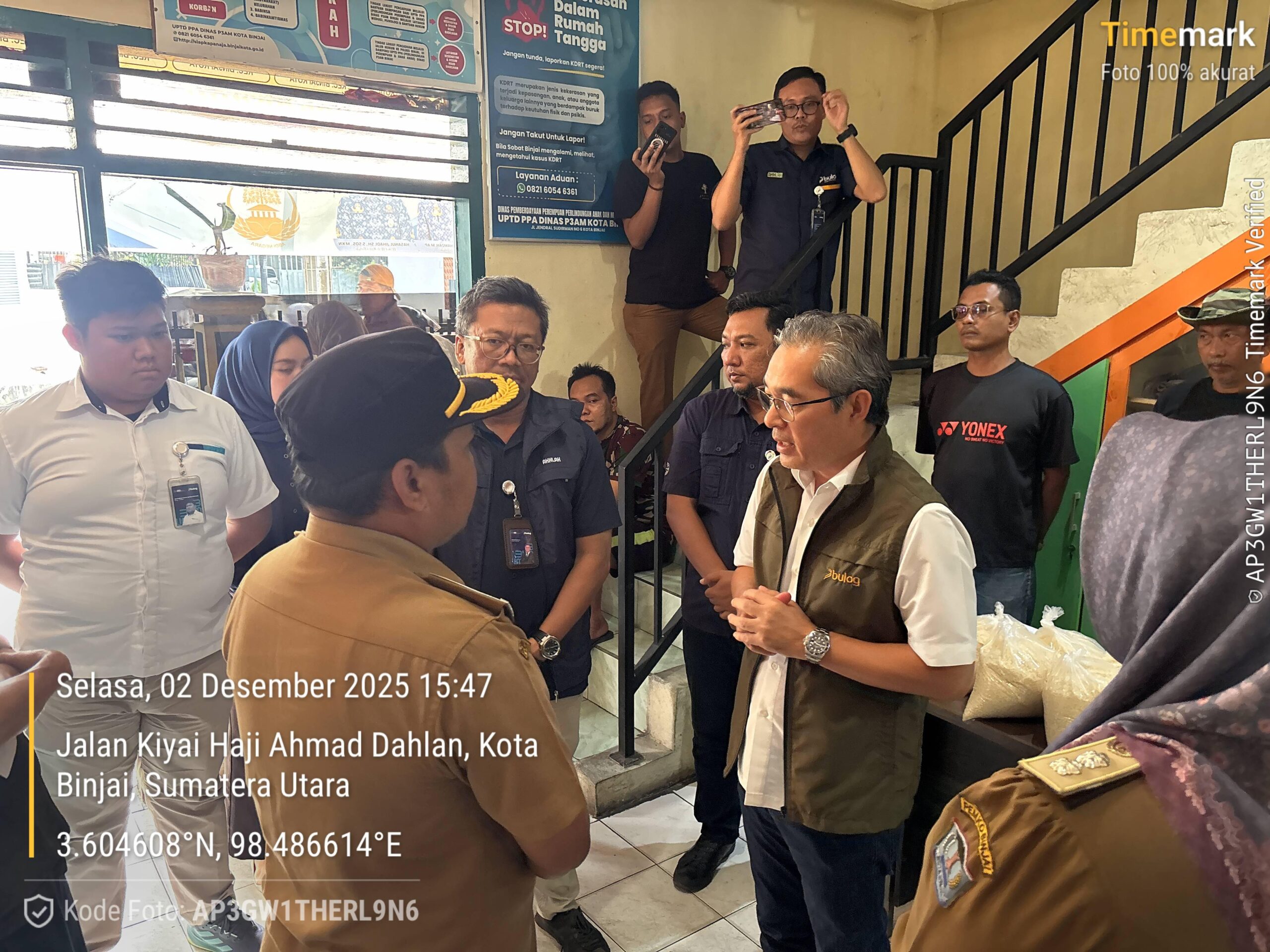MEDAN (Berita): Direktur Keuangan Perum Bulog Hendra Susanto memantau penyaluran beras bencana alam (bencal) di Kota Binjai, Sumatera Utara Selasa (2/12/2025).