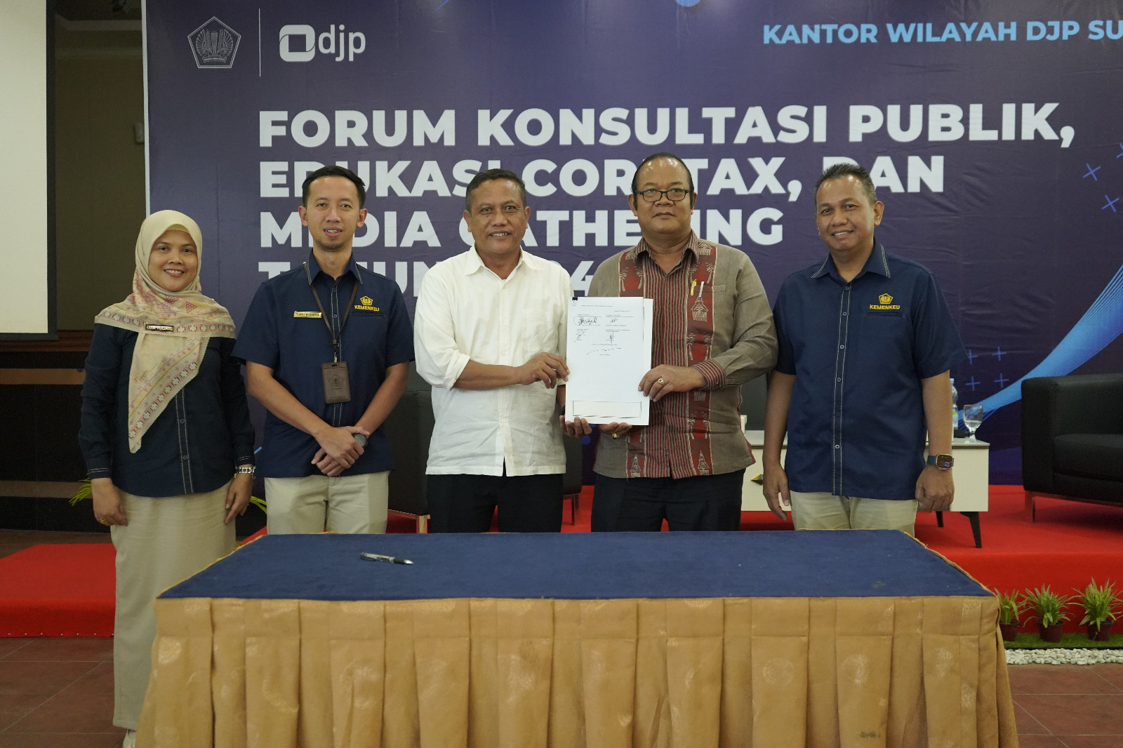 Bagian akhir acara ditandai dengan penandatanganan Berita Acara Hasil Forum Konsultasi Publik oleh perwakilan DJP dan peserta. Penandatanganan ini menjadi simbol komitmen bersama untuk terus berinovasi dalam menciptakan pelayanan perpajakan yang lebih baik, berkeadilan, dan inklusif.
