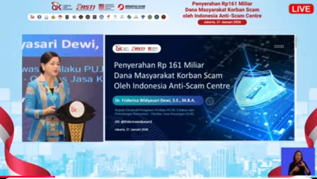 JAKARTA (beritasore.co.id): Indonesia Anti-Scam Center (IASC) yang dibentuk Otoritas Jasa Keuangan (OJK) dan Satuan Tugas Pemberantasan Aktivitas Keuangan Ilegal (Satgas PASTI) memberikan Rp161 miliar dana masyarakat korban penipuan (scam).