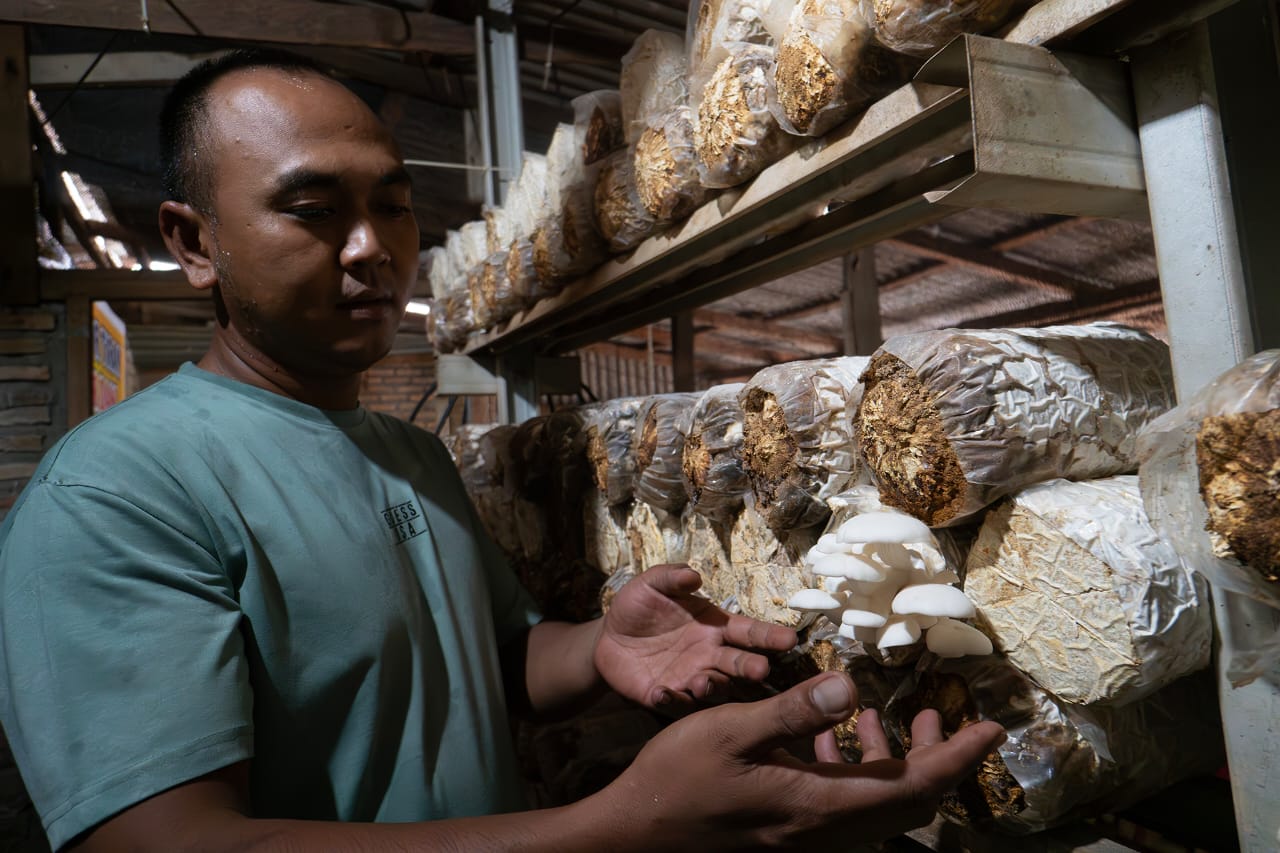 Salah satu penerima manfaat adalah Dani, 36, warga Desa Kuala Tanjung, yang mengembangkan usaha budidaya jamur tiram dengan nama kelompok usaha budidaya jamur “Gubuk Jamur Dani”.