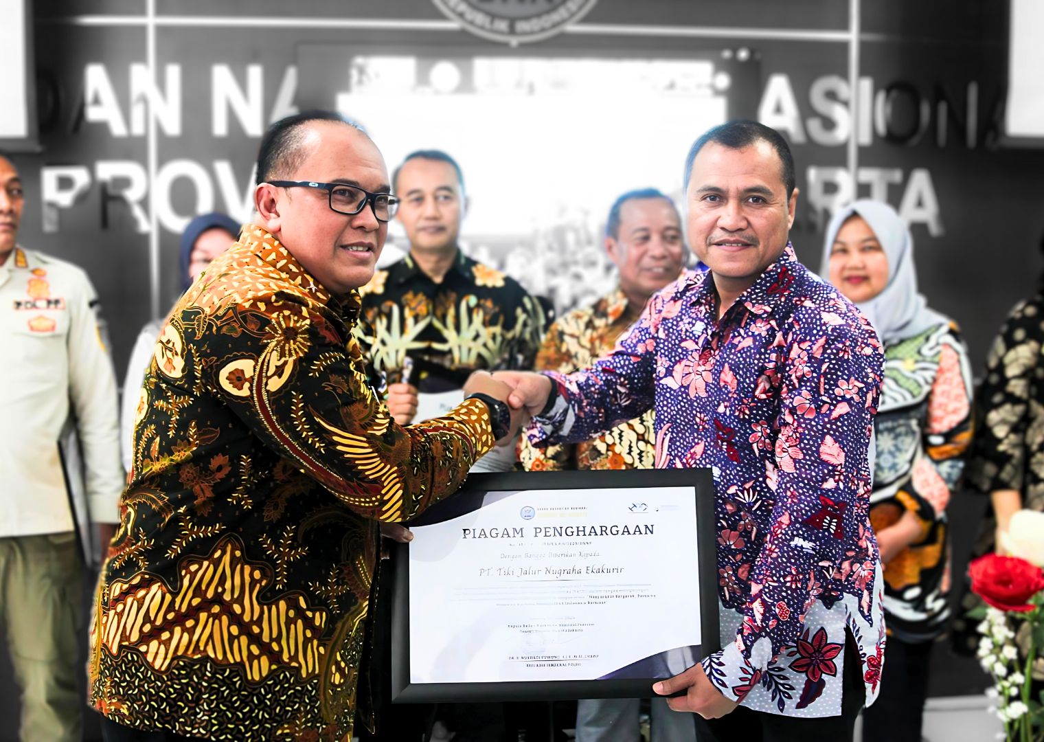 Penghargaan itu diserahkan langsung oleh Brigjen. Pol. R. Nurhadi Yuwono, selaku Ketua Badan Narkotika Nasional Provinsi (BNNP) DKI Jakarta di terima langsung oleh Samsul Djamaludin selaku SVP – Group Head of Quality Assurance, Governance & Compliance JNE di Aula Atmani Wedhana BNNP DKI Jakarta, Rabu (26/6/2024).