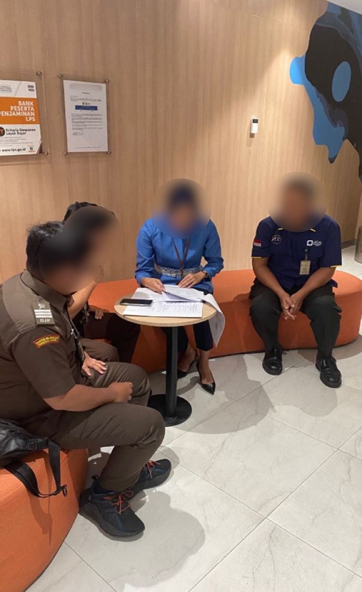 Berita Sore/ist JSPN KPP Pratama Medan Petisah berkoordinasi dengan pegawai bank penyimpan aset penunggak pajak terkait proses sita.