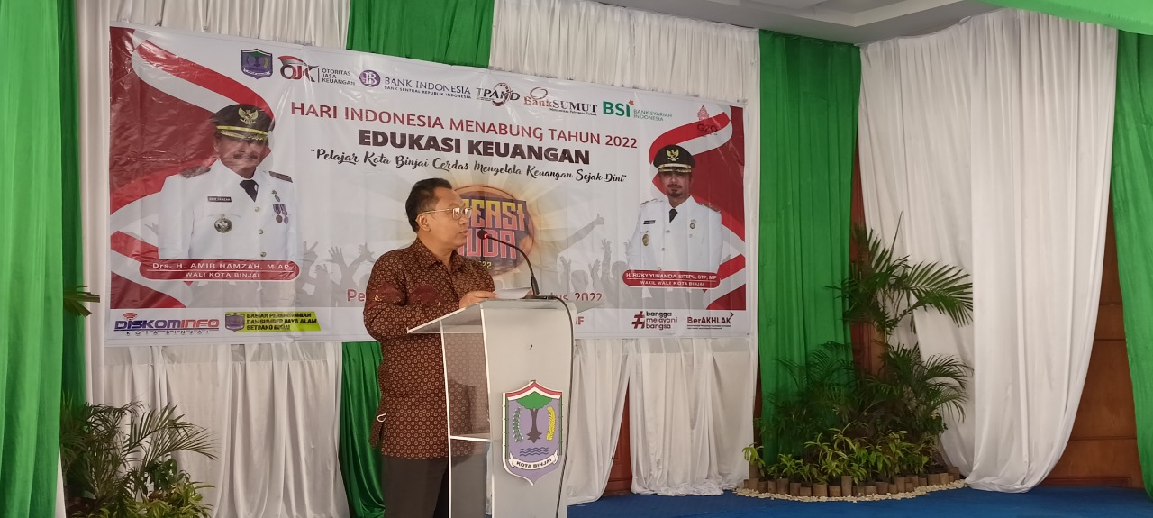 Dalam sambutannya, Sekretaris Daerah Kota Binjai, H. Irwansyah Nasution menyampaikan agar kegiatan edukasi dan sosialisasi Menabung Sejak Dini ini dapat terus dilakukan dengan jumlah peserta yang lebih besar lagi agar para pelajar dapat menerima pemahaman mengenai menabung sejak dini serta ragam produk dari lembaga jasa keuangan.