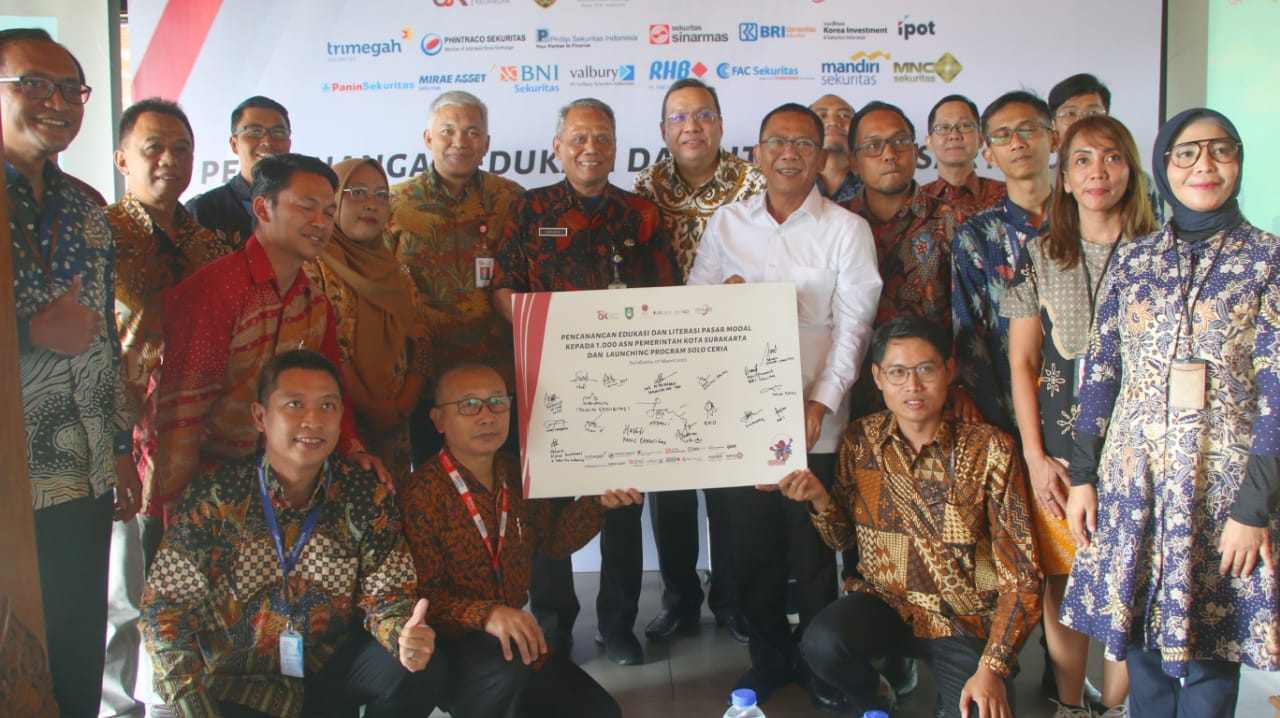 SURAKARTA (Berita): PT Bursa Efek Indonesia (BEI) secara simbolis melakukan penandatanganan Pencanangan Edukasi dan Literasi Pasar Modal kepada 1.000 Aparatur Sipil Negara (ASN) Pemerintah Kota Surakarta dan Launching Program Solo CERIA (Cerdas Investasi Aman) pada Selasa (7/3).