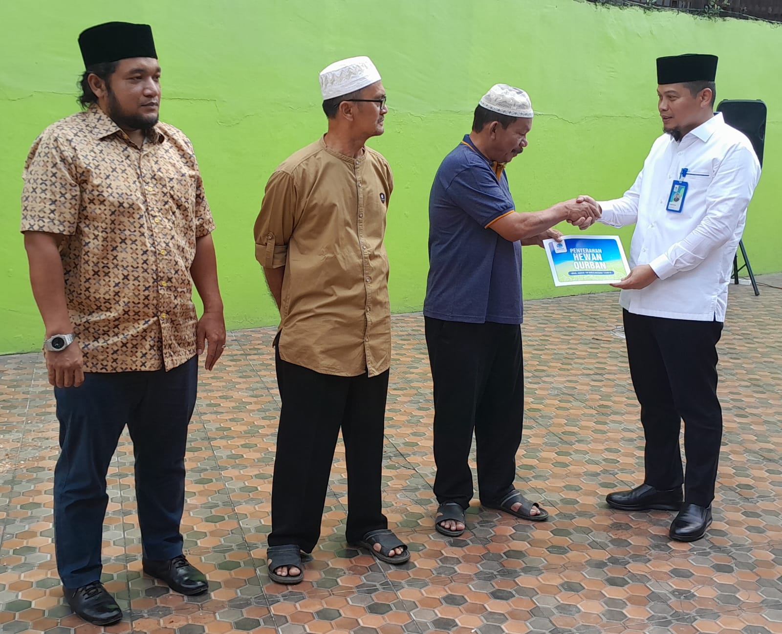 Penyerahan hewan qurban tersebut dilakukan secara simbolis oleh Plt Direktur Utama (Dirut) Perumda Tirtanadi Sumatera Utara, Ewin Putra didampingi Plt Direktur Air Limbah Perumda Tirtanadi Sahrim Siregar, Direktur Administrasi dan Keuangan Perumda Tirtanadi Salman Farizi Sihotang kepada pengurus Badan Kenaziran Mesjid (BKM) di halaman Mesjid An-Nazhafah Jalan Rumah Sumbul No.4 Medan.